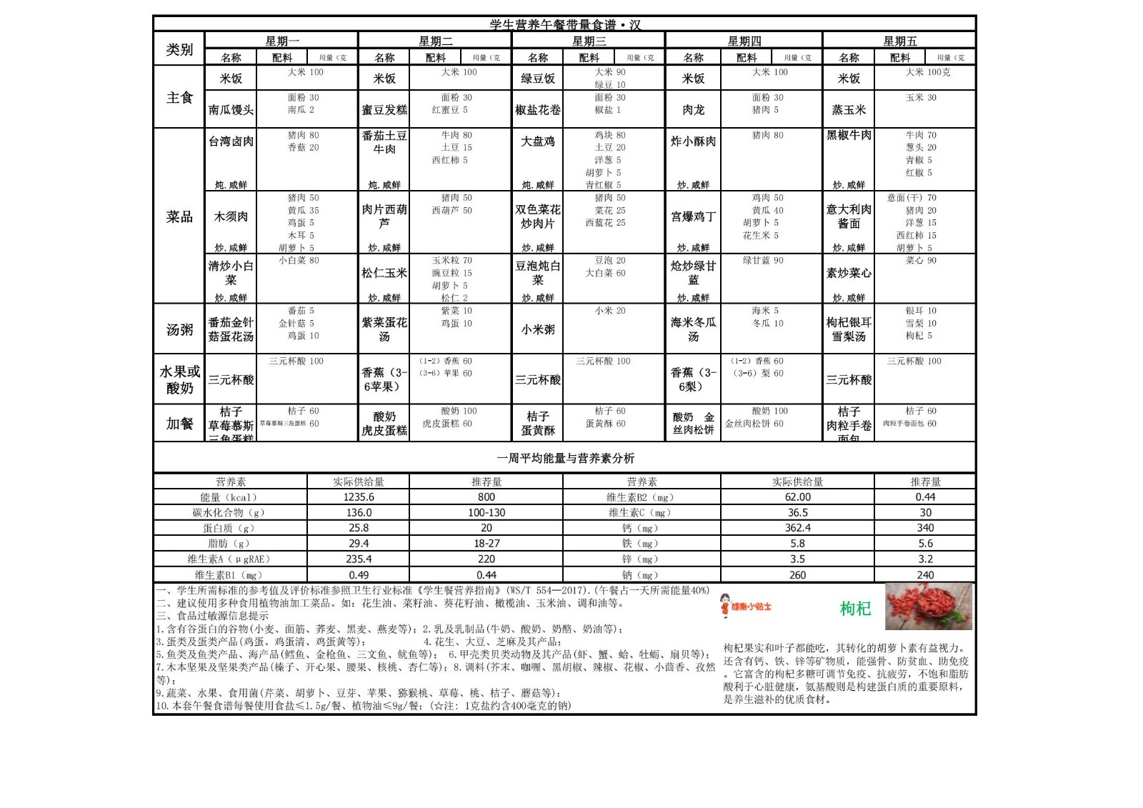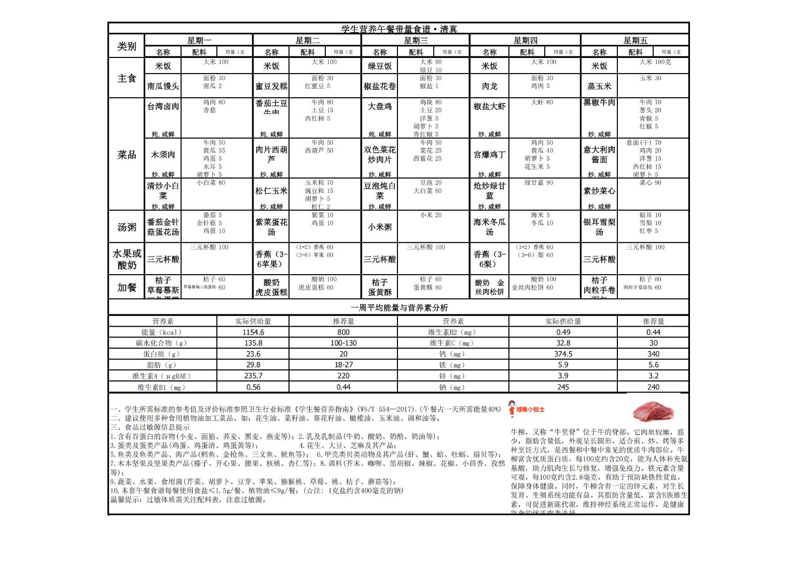 清华大学附属小学昌平学校(天通苑校区)学生午餐营养食谱 2025年10月20日-2025年10月24日